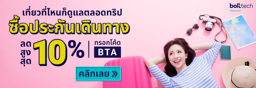 เพื่อให้ทริปครั้งนี้อุ่นใจขึ้น ซื้อประกันเดินทางออนไลน์ กับ bolttech.co.th ไม่ว่าคุณจะเป็นนักท่องเที่ยวมือใหม่ หรือเป็นนักเที่ยวตัวยง ประกันเดินทางคุ้มครองคุณระหว่างเดินทาง อย่างค่ารักษาพยาบาล อุบัติเหตุที่ไม่คาดคิด ครอบคลุมกรณีสัมภาระสูญหาย เครื่องบินดีเลย์ หรือเกิดอุบัติเหตุฉุกเฉินขึ้นมา เจ้าหน้าที่พร้อมช่วยเหลือและประสานงานให้กับคุณได้ สบายใจกว่าเยอะเลย