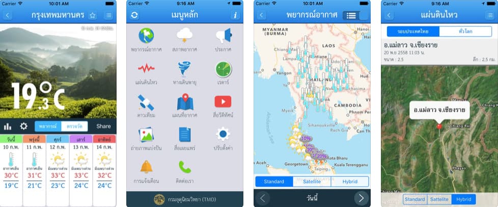 แอปของกรมอุตุนิยมวิทยาที่คอยอัปเดตสภาพอากาศภายในประเทศ ซึ่งฟังก์ชันที่แนะนำสำหรับคนไม่อยากเปียกฝนตอนออกจากบ้าน คือ การพยากรณ์อากาศ ที่จะแสดงข้อมูลของแต่ละจังหวัดว่าสภาพฟ้าฝนเป็นยังไงบ้าง โดยมีข้อมูลทั้งแบบช่วงเวลาปัจจุบันและการพยากรณ์ล่วงหน้า นอกจากนี้ยังมีข้อมูลข่าวสารและประกาศแจ้งเตือนต่าง ๆ จากกรมอุตุนิยมวิทยาไว้ให้คอยติดตามกัน